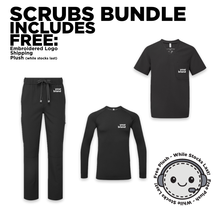 The Scrubs Bundle from Onna delivers a comprehensive welcome package for your workforce with 2 Tunics, 2 underscrubs, and 2 pairs of pants. Includes embroidered logo on the left chest of each item and FREE LOGO SETUP.